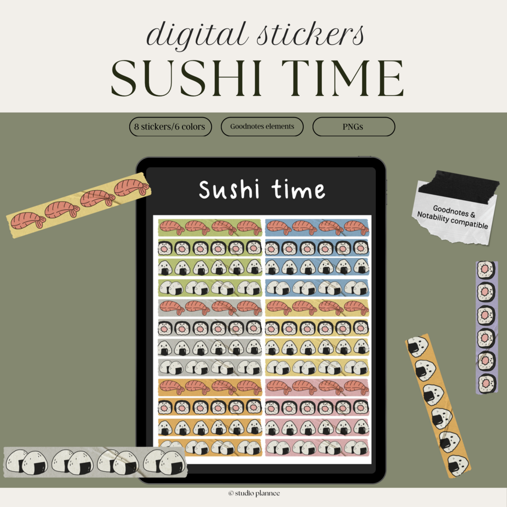 βSUSHI TIMEβ digital stickers set (washi tapes & sticky notes)